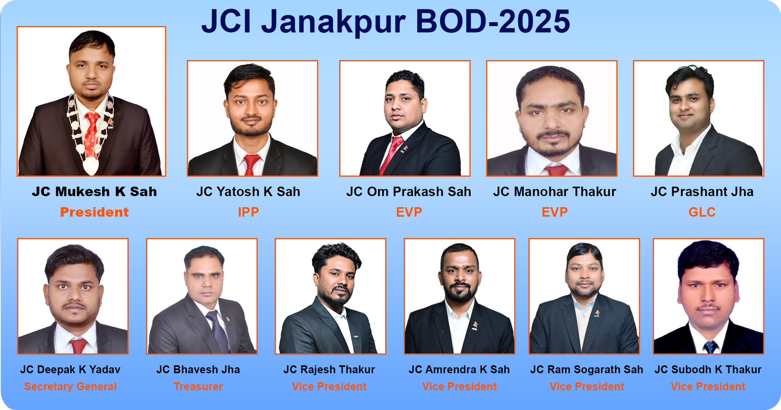 I am deeply honored and grateful to be elected as the President of JCI Janakpur 2025. With your trust and support, I, along with my team, am committed to leading our organization toward new milestones.
